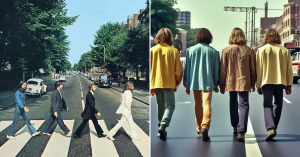 Именно так «Шедеврум» представляет себе The Beatles. Не как обычных пешеходов, гуськом идущих по зебре, а как стильных парней, королей музыки, которые оседлали дорогу. Но все равно попадают в ногу, как в оригинале. Все получилось, как и хотел Пол Маккартни, из шести фото выбравший именно то, где Джон, Джордж, Ринго и он сам делают ногами «ножницы». Только лучше. По этой дороге больше не поедут раздраженные таксисты, теперь это трасса для рок-н-ролла.