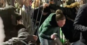 На кадрах из телеграм-каналов видно, как толпа пассажиров, высадившихся на платформе, покидает ее через дырку в заборе. Благополучно выбравшись со станции, они триумфально достают телефоны и начинают снимать происходящее.