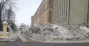 «Большой Снежный Террикон тянется от Малой до Большой Пироговки вдоль здания архива и так далее. Видимо, со всего района снег свозят именно сюда. Высота примерно полтора-два человеческих роста, чтобы вы понимали», — иронизирует на своей странице в фейсбуке москвич Алексей Байков.