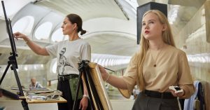 Теперь деятели искусства смогут творить у скульптур двух основателей Рима — новая площадка, как и пространства в метро для музыкантов, обозначена красным кругом. На открытии площадки одновременно рисовали пять человек, которые пришли со своими мольбертами: кто-то изображал на бумаге колонны и белые скульптуры Ромула и Рема, а некоторые включили в композицию и пассажиров московского метро.
