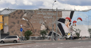 Еще вчера работы на объекте вовсю кипели, правую часть граффити только наносили, но многие уже успели высказаться. Кто-то радуется: «стена наконец ожила», видеть такую работу «приятно». Впрочем, у противников на это есть свои аргументы: