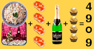«Главное управление Банка России по ЦФО подсчитало, во сколько в среднем обойдется застолье в новогоднюю ночь на семью из четырех человек в Москве. Согласно данным статистики за ноябрь 2019 г., московская семья потратит на домашнее праздничное застолье в среднем 4 тыс. 909 руб., годом ранее такой же набор продуктов стоил 4 тыс. 835 руб. В расчет вошло 23 наименования продовольственных товаров, которые традиционно присутствуют на новогодних столах большинства соотечественников», — цитирует агентство «Москва» данные Центробанка. Считали стоимость селедки под шубой, оливье, бутерброда с красной икрой, стейка из говядины с картофельным гарниром, бутылки игристого вина, фруктового сока и газировки, шоколадных конфет и торта.