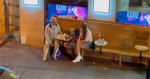 Новый герой Патриарших — дедушка-шахматист, играющий с посетителями ресторанов за деньги