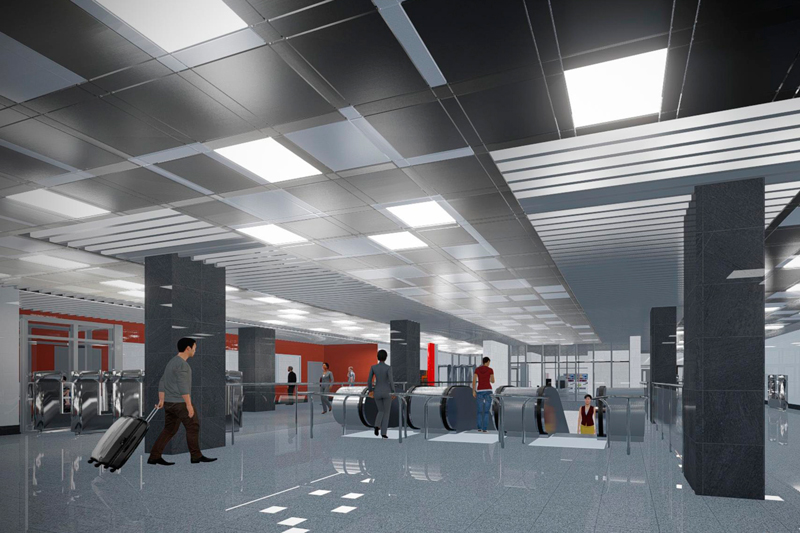 Сама новая станция, как видно из утвержденного Москомархитектурой проекта, будет немного цитировать «Парк культуры» (или, если угодно, «Библиотеку им. Ленина») — в ней появится лестничный спуск посредине, а также «Комсомольскую» — над путями построят галерею. Цвет для облицовочного камня выбирали почему-то с оглядкой как раз на пересадочную станцию — темно-красный. На наш вкус, на станции будет немного темновато — стильные потолочные плафоны, похожие по дизайну на советские перфокарты в сочетании с темными тонами стен, кажется, все-таки дают недостаточно света.