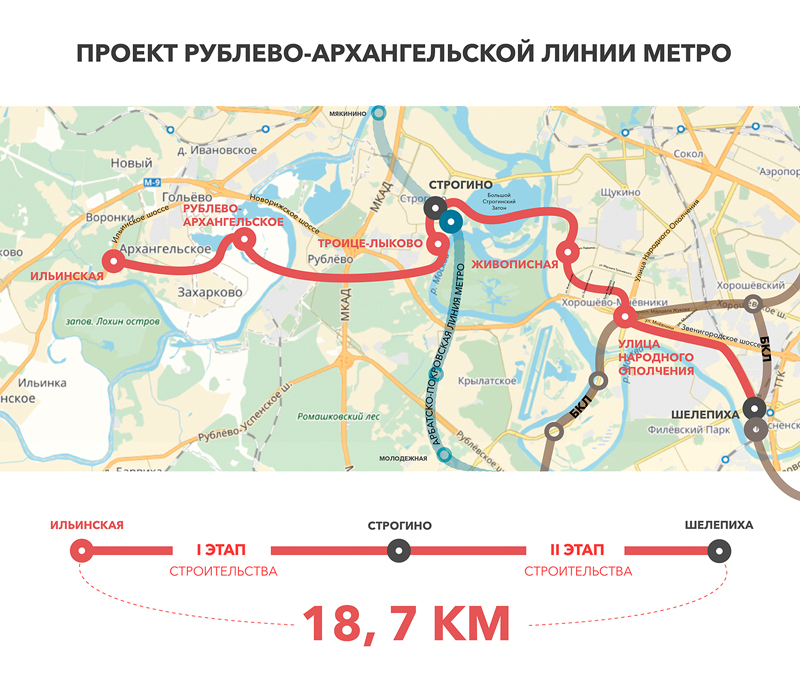 «Мы сегодня уже делаем заделы на строительство метро после 2023 года. Станция “Народного Ополчения” — она в 2021-м должна принять пассажиров, но мы уже там строим вторую поперечную станцию, которая пойдет веткой на Рублево-Архангельское, мы уже сейчас эту станцию закладываем, а строить продолжение будем уже где-то после 2023 года», — заявил сегодня Хуснуллин, сообщило агентство «Москва».