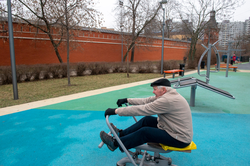 Через пару минут упираюсь в красную кирпичную стену, которая раньше принадлежала Покровскому монастырю, а теперь опоясывает Таганский парк — он находится на месте монастырского кладбища. Лет десять назад шли разговоры о том, что обитель хочет вернуть эту землю себе, и игуменья Феофания даже высказывалась в том духе, что это ничего особенно не изменит, и здесь по-прежнему можно будет гулять, и даже в короткой одежде, но потом все как-то улеглось, и парк остался светским. Справа от входных ворот, прямо у стены с башнями, расположен стадион, где зимой заливают каток, но когда тут был я, по беговой дорожке еще нарезали круги джоггеры. Модная многослойность по-московски: монастырская стена середины XIX века украшена спортивными барельефами времен советских физкультпарадов, а рядом — деревянные трибуны эпохи собянинского урбанизма и института «Стрелка». Каждый раз, когда вижу такое, у меня реально едет крыша. Удивительный город.