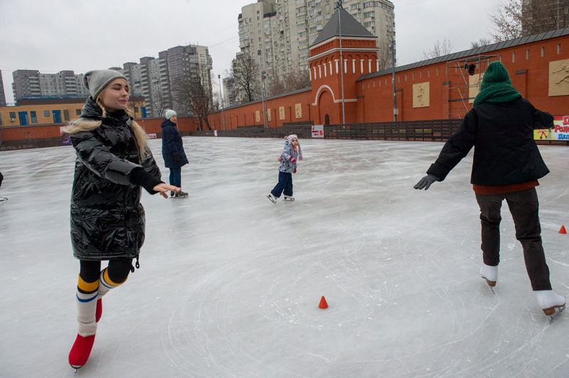На катке и в парке полно детей. «Костя, Костя, подожди, не напугай ее!» — кричит мама выскочившему из коляски сыну, но куда там: малыш с совком наперевес уже погнался за белкой. Та, не будь дурой, сиганула на дерево. Вообще не очень понятно, как белки тут выживают, тем более что парк крошечный. Возможно, они находят укрытие в соседнем Покровском монастыре — там публика все-таки менее агрессивная. Я хочу перекусить и подхожу к ларьку с немного претенциозной вывеской «Эклерная в парке», но оставшиеся два шоколадных эклера по сто рублей выглядят как заложники, которых держали в заточении минимум неделю, и я не решаюсь их спасти.
