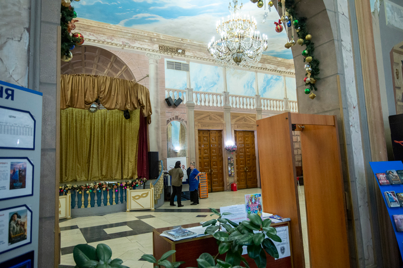 Страшно хочется есть, но пара пробежавших мимо бездомных собак, бетонный забор Калитниковского кладбища, в который упирается улица, и недопитая полуторалитровая «сиська» «Клинского» на автобусной остановке как бы намекают, что цивилизация тут заканчивается, и искать общепит бесполезно. Я захожу в ДК и спрашиваю даму-охранника, нет ли внутри кафе. Оказывается, кафе нет, но есть автомат с горячими напитками. Прохожу внутрь — и как будто попадаю в советское детство. В фойе с зеркалами, люстрами и лепными настенными медальонами с изображениями лыжников и балерин сидит вахтерша. В зале слева идут детские занятия хореографией: «И раз, и два, и три!», а в зале справа, судя по музыке, в самом разгаре концерт коллективов народного творчества.