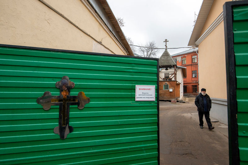 Первое, что я вижу, когда подхожу к Покровскому монастырю по Абельмановской — группа мужчин в черных куртках и черных шапочках. Это монастырские охранники выбежали за угол покурить. Тут же, прямо на улице и метров за пятьдесят до входа в монастырь, стоит рамка металлоискателя. Дальше по правой стороне — огромная монастырская гостиница со швейцаром в синем пальто с золотыми пуговицами, фуражке и белых перчатках. На ходу гуглю цены: от 6 тыс. за одноместный номер до 80 тыс. за президентский апартамент. Двухместный люкс с видом на монастырь стоит 20 тыс. рублей в сутки. Среди услуг — вызов визажиста в номер, при отеле есть оздоровительный комплекс с бассейном, сауной, джакузи, тренажерным залом, спа, парикмахерской, массажем и водолечением. В общем, «солидный Господь для солидных господ», как и было сказано.