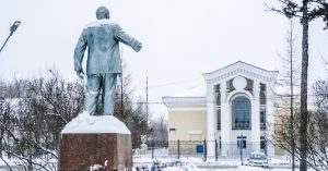 А вот и главная площадь с памятником Ленину, чья длань указывает на стоящий через дорогу ДК Аэрации — шедевр сталинского неоклассицизма, памятник культуры, архитектуры и вообще всего на свете. Только ради этого ажурного портика уже стоило бы сюда приехать. И дело не только в красоте фасада, но и в историях, которые скрываются за ним. Скажем, многим известная песня «Комиссар», она же «Ой да батька атаман», в обязательном порядке входившая в репертуар любого уважающего себя школьного гитариста 1990-х. С ее авторством вроде как давно определились — за это ответственны ленинградские панки Михаил «Солидный» Тинкельман и Игорь «Нехороший» Шолк. А первым исполнителем будущего хита стала группа «Автоматические Удовлетворители» под управлением главного enfant terrible Ленинградского рок-клуба Андрея Панова по прозвищу Свинья. Активно использовавшееся в спорах о происхождении песни видео, на котором Свин исполняет «Батьку атамана», сидя на корточках перед мраморной балюстрадой, было снято как раз в курьяновском ДК в 1989 году.