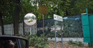 Напротив музея на фигурных нишах забора Дома творчества красками прямо по кирпичу нарисованы персонажи Чуковского. Это рисовали советские дети, посетившие музей. Теперь этот забор зарос сорняками, и от него пахнет мочой.
