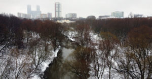 Ну а на другой стороне улицы Вильгельма Пика, также возле метро, стоит еще один парк — «Леоновская роща», буквально перетекающая в Ботаничку. С виду он ничем не примечателен. Разве что окружает странный китайский бизнес-центр «Парк Хуамин». Еще в Леоновской роще стоит памятник Конфуцию. Изготовили бронзовую фигуру мыслителя в Китае, а затем передали в дар Москве от лица Академии конфуцианства.