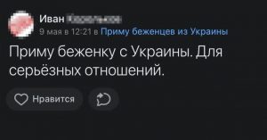 В социальных сетях появилось много объявлений от жителей Москвы и области, которые решили с помощью спецоперации (точнее, ее последствий) наладить личную жизнь или быт. Так, мужчины региона прямым текстом пишут, что готовы принять беженку с Украины «для серьезных отношений».