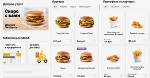 Можно посмотреть меню ресторанов (тут все, как и сообщалось ранее — привычные блюда, но без приставки «Мак» и без «Биг Мака» и «Биг Тейсти») и цены на блюда. Кроме того, присутствуют карта ресторанов (правда, на каждом из них написано «Временно закрыт») и заглушки для доставки и заказа в ресторане.