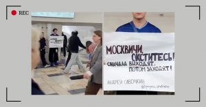 «Окститесь»: пассажир метро вышел с плакатом, чтобы напомнить москвичам об этикете