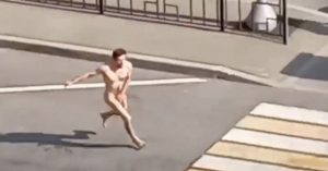 В первом часу дня молодой человек без одежды бегал возле ТЦ Columbus в Чертаново. Неизвестно, был ли он агрессивен, но на одном из фото он стоит рядом с лежащей на земле пенсионеркой с собакой. Двое мужчин пытались с ним поговорить, однако затем парень сам упал в траву. Видимо, задерживать его не стали, потому что на этом «приключения» нудиста не закончились. На видео он сначала искупался в фонтане возле торгового центра, а затем и вовсе выбежал на проезжую часть, остановил фуру и попытался забраться на нее по решетке радиатора. Когда у голого человека это не получилось, он помахал водителю и пошел дальше.