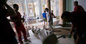 Скульптуры были демонтированы с северного входа главного усадебного дома и теперь хранятся в запасниках. Реставраторы будут спасать их от копоти и налета, воссоздадут скульптурам руки и отольют гипсовые коринфские капители, пишет «РИА Новости». Начнут в апреле, а закончить обещают до конца ноября 2019 года. Все это происходит, видимо, в рамках начавшейся в 2013 году реставрации всего усадебного комплекса, который долгое время ждал своего часа, с трудом выдерживая капризы московской погоды (ведь его сооружения деревянные). Впрочем, как говорит директор музея-усадьбы Геннадий Вдовин, ветшать Останкинскому дворцу никогда не позволяли: вся программа противоаварийных работ выполнялась постоянно.