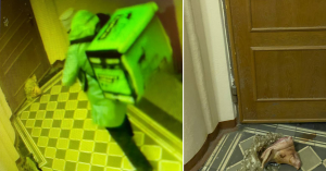 Позже появилось фото с камер видеонаблюдения, установленных в подъезде: на нем виден человек в зеленой форме и с курьерской сумкой, как у Delivery Club. В пресс-службе компании сказали: «К нам человек на видео не имеет никакого отношения. На видео старый рюкзак, который мы не выдаем курьерам уже больше двух лет. Заказов по данному адресу также не было».