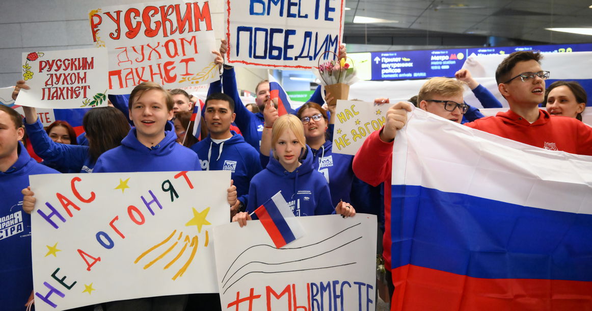 Самолет должен был приземлиться в 1.50, но сел примерно на 20 минут раньше. К этому моменту у выхода спортсменов уже ждали люди с плакатами «Наша сила в наших героях», «Нас не догонят» и т. п. Многие пришли с букетами, в том числе для лыжницы Анастасии Багиян и горнолыжницы Варвары Ворончихиной.