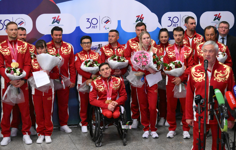 Паралимпийцы, несмотря на очевидно тяжелый ночной перелет, пообщались с журналистами и болельщиками. С поздравительной речью выступил Роман Костомаров, олимпийский чемпион в танцах на льду. Он назвал выступление команды подвигом и поблагодарил спортсменов за результат.