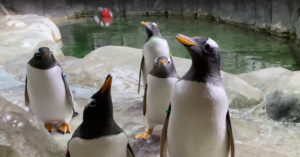 Папуанских пингвинов в Московском зоопарке научили лопать мыльные пузыри