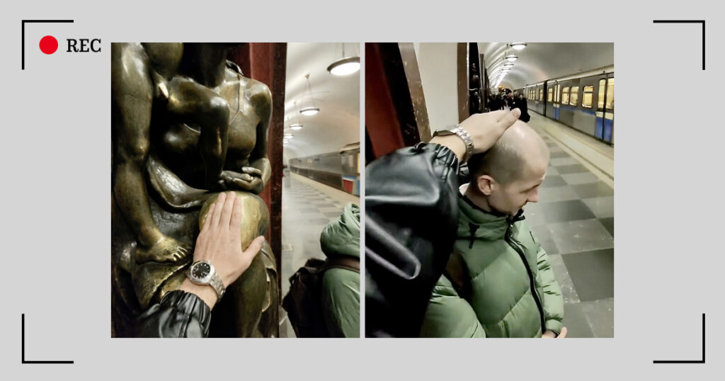 Парень устроил на «Площади Революции» потирание пассажиров вместе со скульптурами