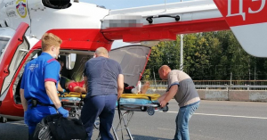 На место аварии прилетел санитарный вертолет, чтобы экстренно забрать пострадавших в больницу.