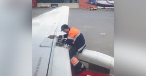 И вдруг за пару минут до отправления вашего рейса на турбину судна залезает технический работник аэропорта, которому на вид не дашь больше 20 лет, и начинает производить манипуляции с крылом самолета. Позже он, удобно расположившись на корпусе, достает из кармана телефон. «Давай, загугли еще», — восклицает один из пассажиров, который снимает происходящее на видео.