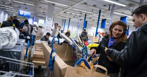 Покупатели стоят в огромных очередях на кассах с полными тележками (покрупнее и поменьше), корзинками и коробками в руках. У кого-то из-под коробок, скинутых в тележку, торчит хвост фирменного икеевского плюшевого динозавра, а кто-то берет сразу по 30 товаров одного наименования, видимо, чтобы потом перепродавать. По словам одной из покупательниц, скупают все, даже салфетки. И весь ажиотаж происходит в будний день, в рабочее время — что это, если не доказательство известной всенародной любви к бренду?