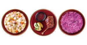 В преддверии премьеры сеть супермаркетов «Перекресток» запускает коллекцию готовых блюд. В линейке будет три десятка вариантов, среди которых такие новогодние хиты, как оливье, селедка под шубой, салат с кальмаром и икрой и утиная ножка «Конфи». Кстати, в оливье майонез заменили на воздушно-творожную заправку, а вот колбасу оставили «ту самую», «ГОСТовскую». «Каждое блюдо — это не случайный набор ингредиентов, а результат нашей работы в поиске баланса между традициями и инновациями», — отметил бренд-шеф готовой еды торговой сети «Перекресток» Евгений Хен.