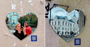 «Наблюдаю вчера, сегодня и, надеюсь, понаблюдаю еще какое-то время, как идет человек серым дождливым утром, спешит, но замечает боковым зрением что-то, останавливается и улыбается своему отражению в сердце», — объяснила смысл акции основательница «Периодики» Варвара Веденеева в своих соцсетях.