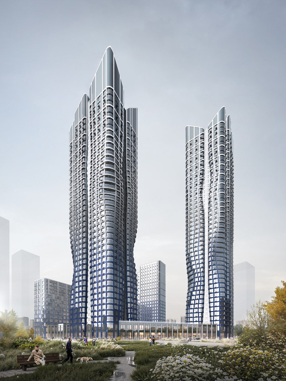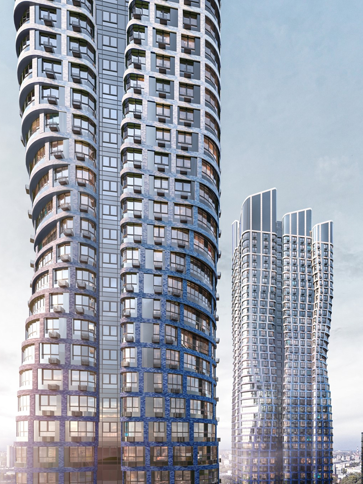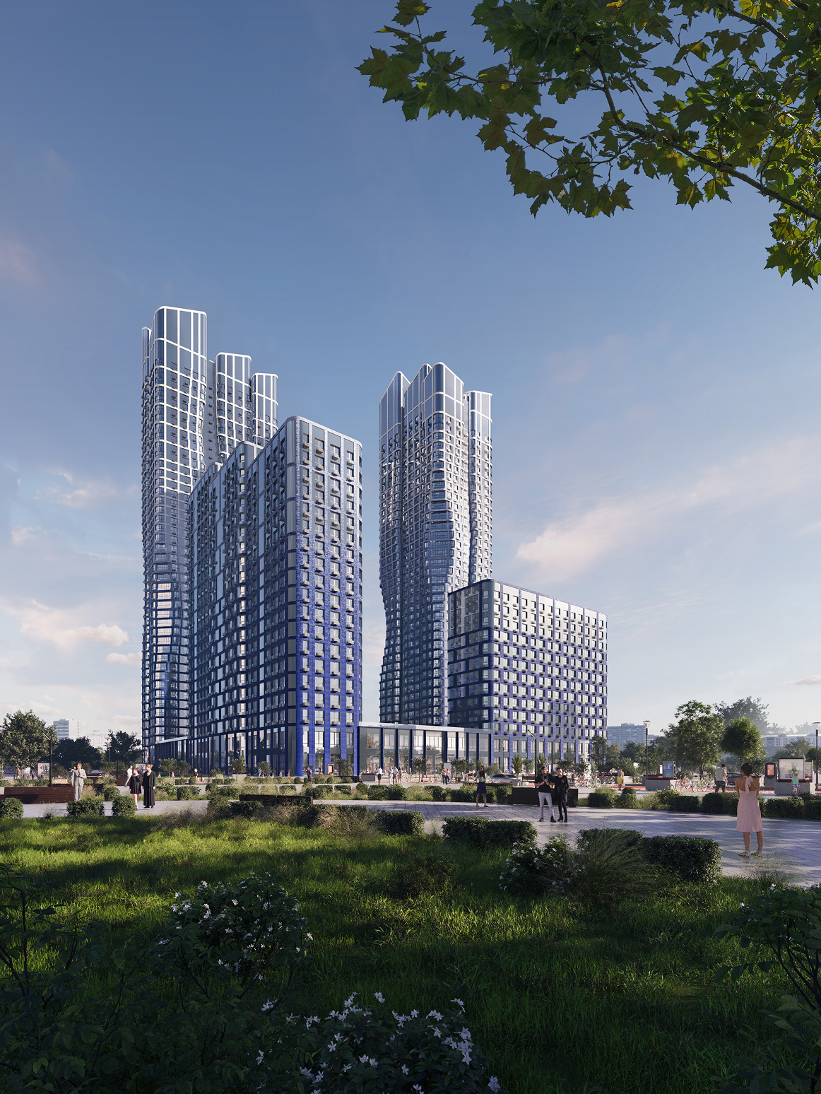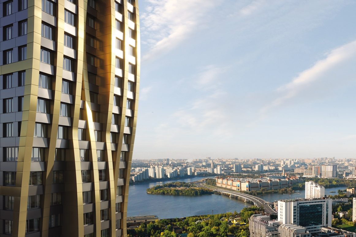 Девелопер ВТБ предвосхитил этот запрос и пересмотрел концепцию комплекса «Адмирал», хоть это и подразумевало дополнительные вложения, начиная с разработки проекта и заканчивая самой стройкой. На смену классическим высоткам со скругленными углами и плавными линиями пришла сложная футуристическая архитектура, созвучная духу новой локации и ее амбициям. Проект, разработанный бюро Ariada, теперь гораздо больше соответствует морскому «неймингу». В двух высотках первого квартала по фасадам зданий будто бежит волна. Водную тему поддержит и градиент от синего к голубому и белому. Увидев такую примечательную архитектуру, сразу понимаешь — здесь начинается Москва будущего: зеленая, ультрасовременная и неординарная.
