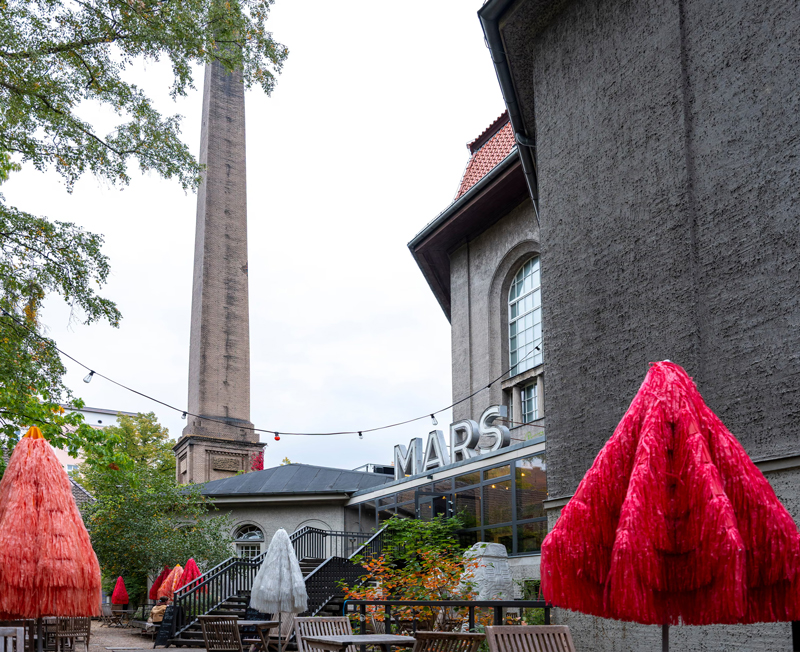 Но кладбищенские аперитивы — это не предел. Неподалеку от «Лизбет», почти на границе Веддинга с Митте, работает целый небольшой берлинский «Винзавод». Или скорее «Стрелка». Работает в здании бывшего… крематория, трубу которого видно еще по пути от метро. Его построили в 1912-м, затем несколько раз модернизировали и прекратили сжигать трупы лишь на столетний юбилей. Теперь внутри кафе Mars, анфилада просторных залов с приглушенным теплым лофтовым светом низких потолочных ламп, диваны с пледами и подушками, бесплатная мятно-лимонная вода, вина недели и стенд с сезонным предложением тыквенного латте. На террасе допивает и курит дама с далматинцем. За соседним столиком один убеленный сединами мужчина с профессорским лицом в кожанке с диктофоном наперевес берет интервью у другого почти такого же.