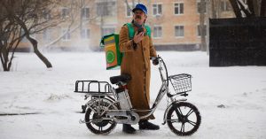 Вряд ли курьеры «СберМаркета» будут такими же вредными, как Печкин из Простоквашино: судя по фотографиям, велосипеды у них есть. Электрические.