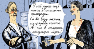— У нее руки еще такие, знаешь, с толстыми пальцами. Ей бы воду носить, мотыгой работать. На грядках копать. А она в старшие менеджеры лезет!