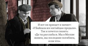 — И вот он приедет и начнет: «Да у нас разве есть какое-то станкостроение?» Или: «У Байкала все китайцам продали». Так и хочется сказать: «Да ты расслабься, да? Мы в Москве живем, мы последние погибнем, если что».