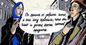 — Она к нему переехала, и они сразу завели двух котов. Через год она с ним рассталась и вернулась с одним котом. А второго он оставил себе. Типа поделили детей. А сейчас ему надо уезжать, и он просит ее одного кота этого забрать, чтоб не тащить неведомо куда. И она ему кричала в трубку, что у него нет ни совести, ни ответственности. Что он чмо и даже кота готов предать ради своих интересов.