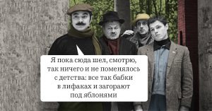 — Я пока сюда шел, смотрю, так ничего и не поменялось с детства: все так бабки в лифаках и загорают под яблонями.