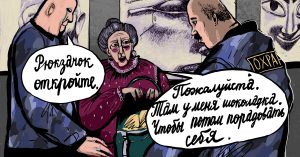 Охранник: Так, пожалуйста, рюкзачок откройте.