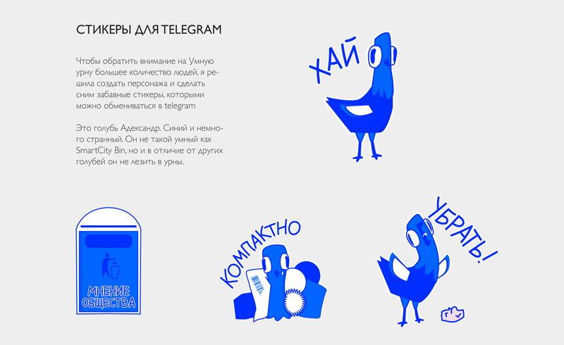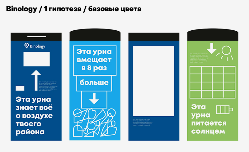 Выбор брифа был сложной задачей, потому что все инновационные продукты оказались очень интересными. Была даже идея поработать над двумя проектами, но так как тайминг был строго ограничен, я все-таки решила сосредоточиться на одной — технологии «умной урны», так как эта идея показалась мне близкой. Сейчас где только не говорят о вопросах экологии, и такой простой, так скажем, «друг» может помочь планете. Кроме того, мне понравилось настроение этого бренда.