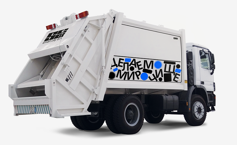 Моя работа получилась объемной и комплексной, так я подхожу к решению любой задачи. Чтобы работать с материалом, мне необходимо продумать множество разных блоков, понимать, как живет бренд, как работает на разных носителях. Я нахожу отличительную особенность и развиваю ее. В данном случае это была функция прессования мусора, которую я отразила в логотипе. Потом мне стало интересно, как идея будет выглядеть в веб-пространстве, на плакатах, футболках и так далее.