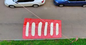 Во дворе одного из жилых домов района появилась новая пожарная разметка, но с нюансом. То ли ее рисовали дети, которым дали поиграть краской вместо мелков, то ли к работе привлекли современного художника, который видит площадку для стоянки спецтехники таким образом.