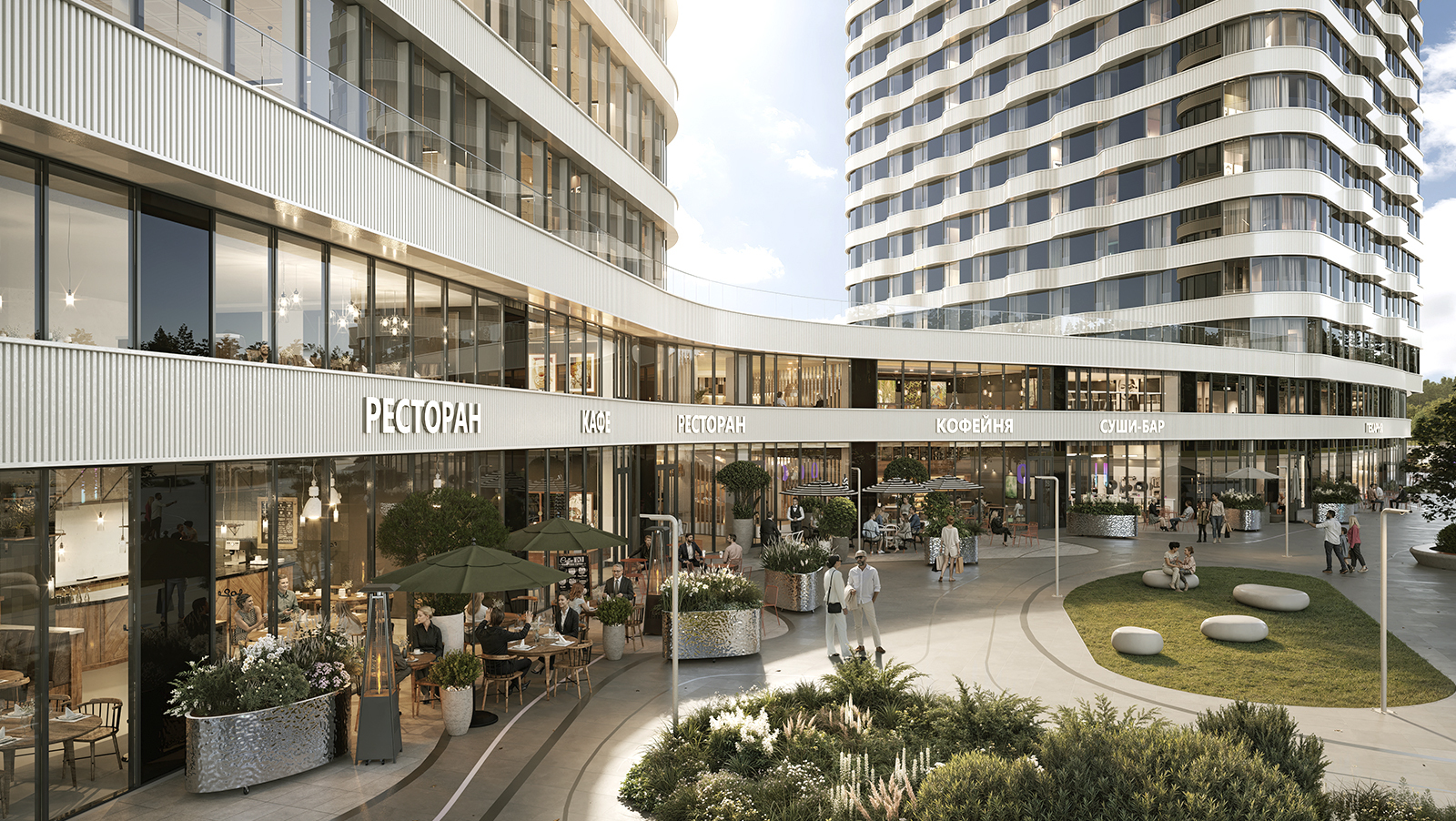 Изюминкой квартала станет собственная гастроулица — прогулочный променад с модными кафе и ресторанами, как у «Патриков» или Усачевского рынка, но прямо у дома. Он протянется на 250 метров, а подбором заведений займется команда ресторанного холдинга Viner Group и знаменитый бренд-шеф Алексей Подлесных. Также здесь заработает образовательный кулинарный центр, а обучение будет проходить под руководством профессиональных шефов. А если ни готовить, ни спускаться вниз не захочется, еду доставят прямо домой, и очень быстро.