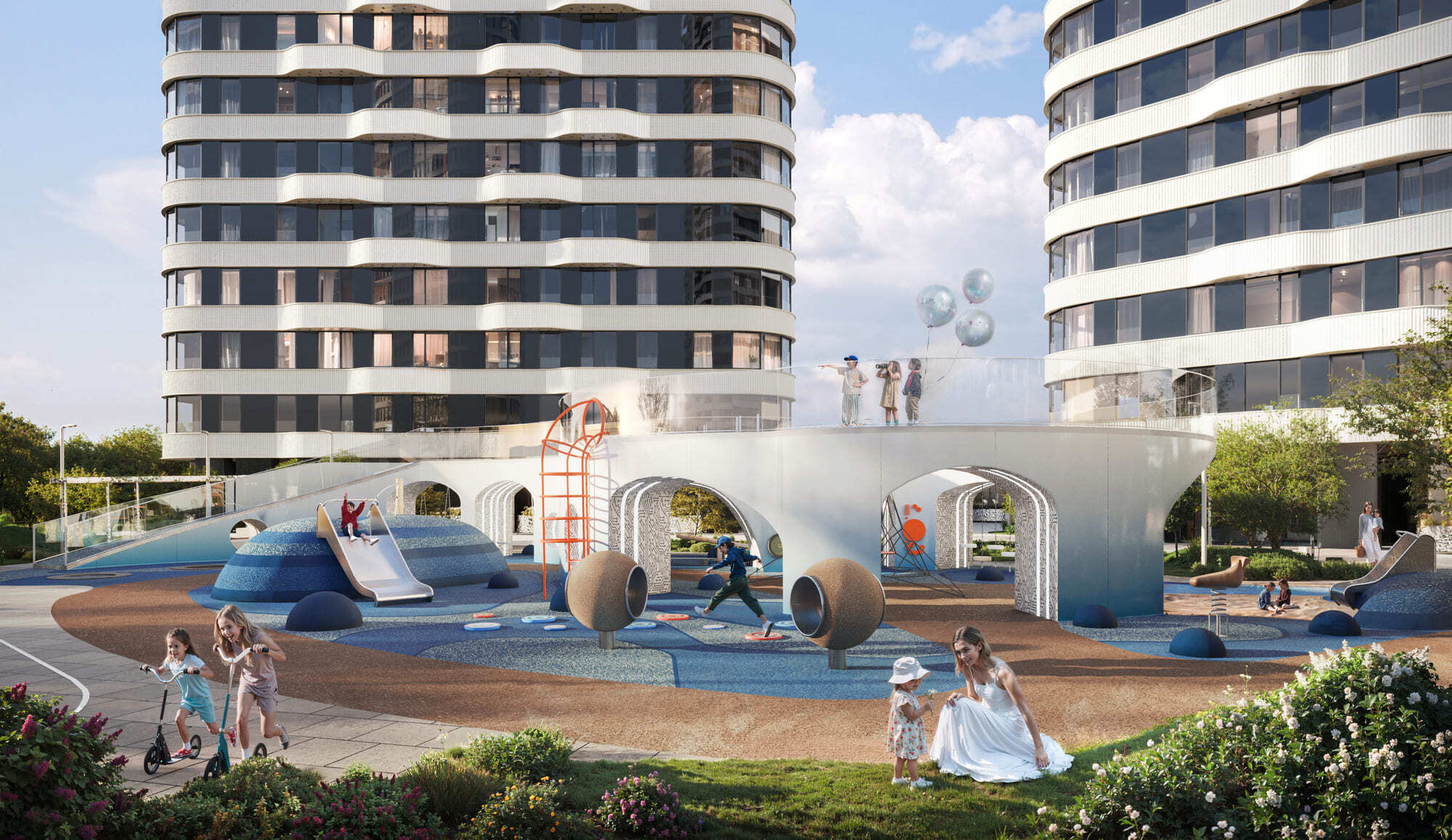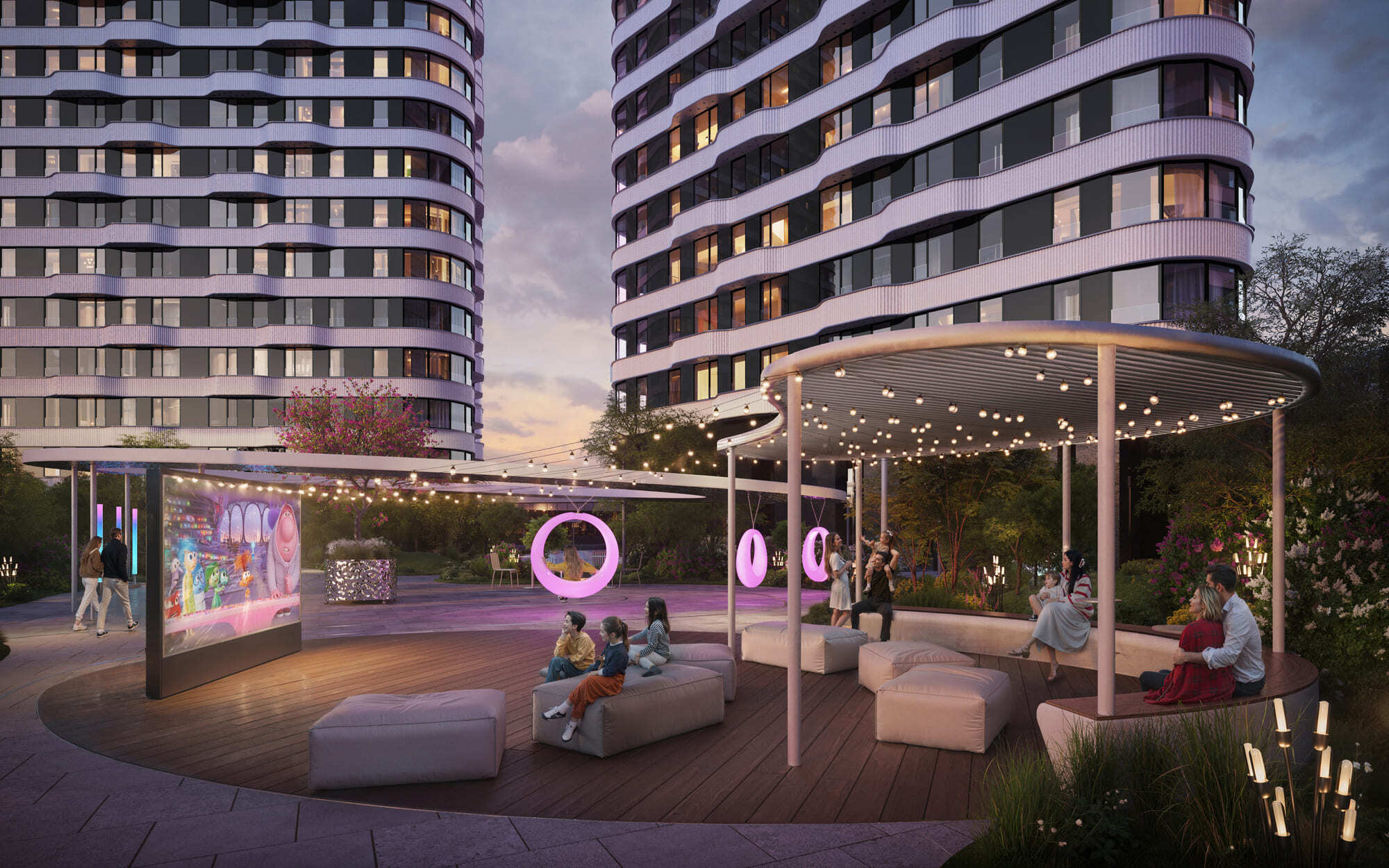 Это первый жилой кластер с гастроулицей и мультиареной для киберспортивных мероприятий, цифровых шоу и новых форматов городских событий, которая станет точкой притяжения для технологичного комьюнити. А на приватной территории жилых домов будут фитнес-зал и воркаут, двор-сад с кинотеатром под открытым небом, ароматным садом и лаунж-зонами, многоуровневый плейхаб и детская игровая с кофековоркингом.