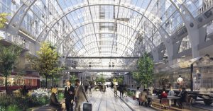У планируемого комплекса помимо непосредственно вокзальной части есть большая общественная. В нее включены торговый центр и рынок, для которых, как утверждает председатель Москомстройинвеста Анастасия Пятова, хотят возвести новые здания общей площадью около 170 тыс. кв. м. При этом уже давно существует и Рижский рынок, и универмаг «Крестовский» — что будет с ними, непонятно. Возможно, их ждет серьезная реконструкция.