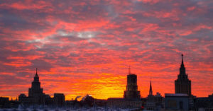 Поэтому сегодня вечером фейсбуки, телеграмы и инстаграмы москвичей заполонили фотографии одна краше другой. Выбрать лучшую, конечно, сложно, потому что на каждой из них закат особенный: где-то ярко-красный, а где-то, наоборот, нежно-розовый; где-то солнце уже скрылось, а где-то его успели поймать. Локации тоже разные: одни фотографируют на фоне исторического центра, другие — из окон родных панельных многоэтажек, третьи — с небоскребами «Москва-Сити».