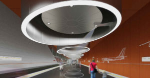 «Потолок станции украсят светильники в виде турбин самолета, а над эскалатором появится модель Ту-144. Из-за сложного рельефа одна путевая стена будет глухой — на ней разместится хронологическая лента с чертежами советских самолетов, а другая будет иметь панорамное остекление», — цитируют Москомархитектуру «РИА Новости».