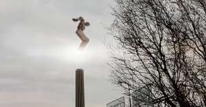 В сети появилось очень реалистичное видео: памятник Гагарину на Ленинском проспекте поднимает руки и улетает в небо, оставляя за собой огненный шлейф, как от ракеты.