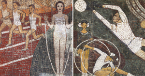 Но на Динамо все пошло другим путем — умным. Стратеги из MR Group, бюро SPEECH и Wowhause, которые занимаются ЖК «Царская площадь», включили в концепцию благоустройства жилого комплекса мозаики, которые раньше были частью ансамбля стадиона «Юных пионеров», и отреставрировали их. Мозаики площадью 18,5 кв. м каждая уже начинали осыпаться.