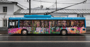 Последний оставшийся московский троллейбус расписан художником Ириной Кориной